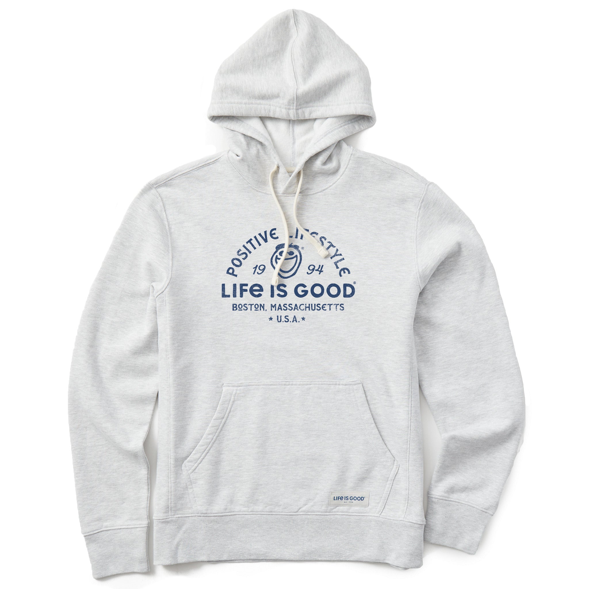 You may notice this hoodie is a little longer than usual—it will shrink to the standard Life is Good fit you know and love after washing!