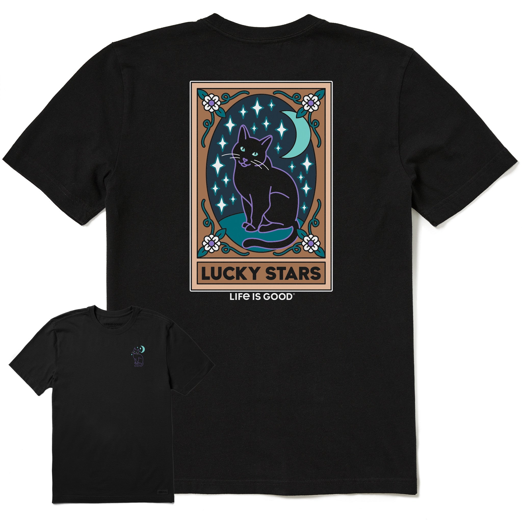 Men's Lucky Stars Black Cat Tarot Short Sleeve Crusher Tee