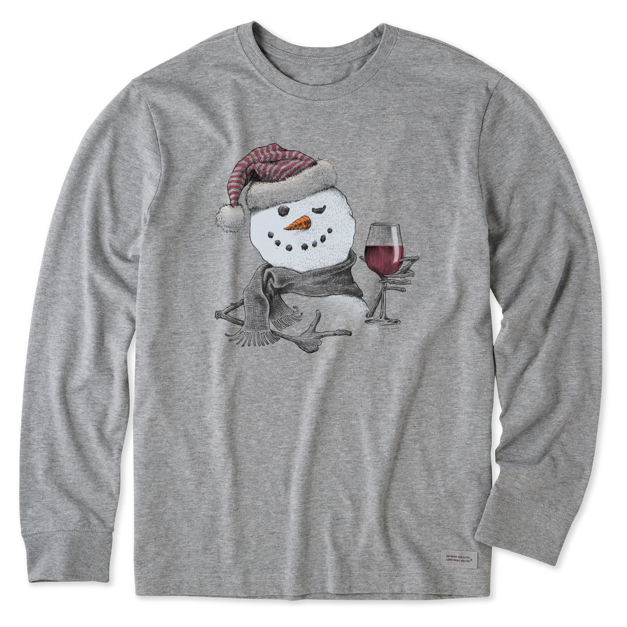 Men's Snowman w Red Wine Long Sleeve Crusher Tee