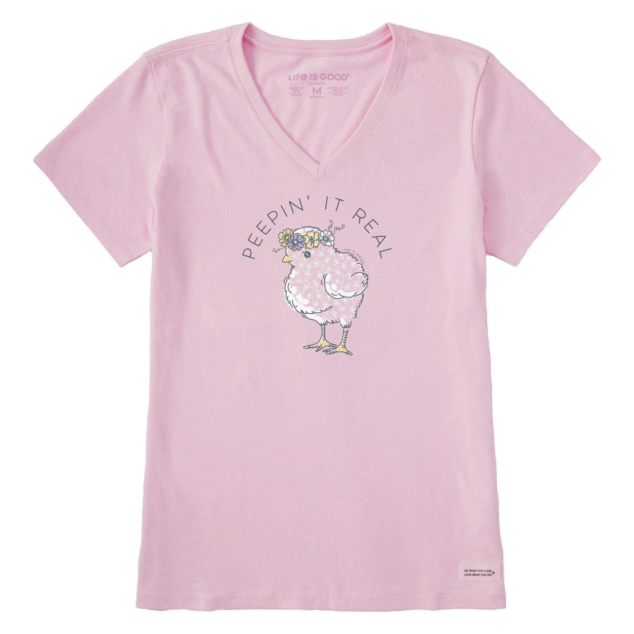 Women's Baby Chick Flower Crown Short Sleeve Crusher Vee